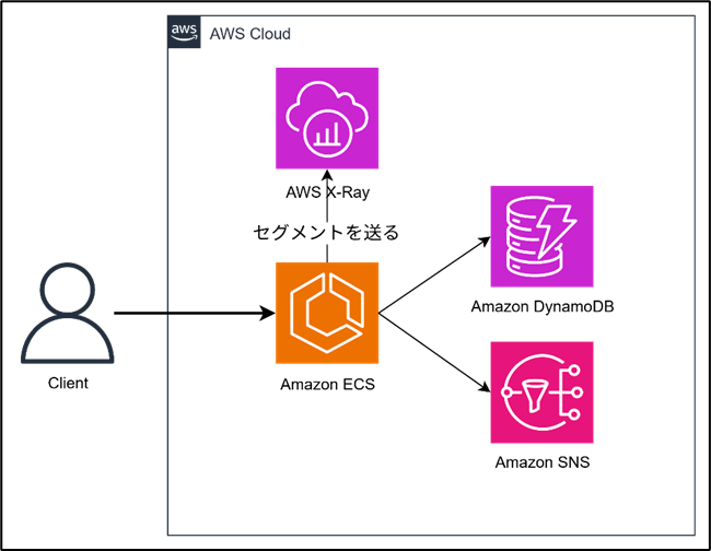セグメントは、以下の図のようにECS などのサービスが X-Ray に送信する“処理の記録”です。