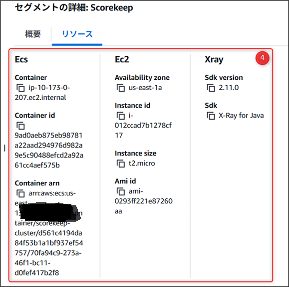 今回でいうとEC2で動いているコンテナの情報です。なんのための情報かというと、例えば、「エラーが発生したセグメントが、どのEC2で動いていたか」がすぐに分かります。
