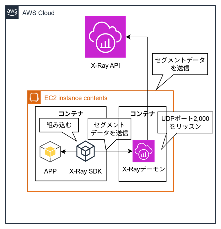 ECSの場合は、X-Rayデーモンプロセスを実行するコンテナをsidecarとしてデプロイします
